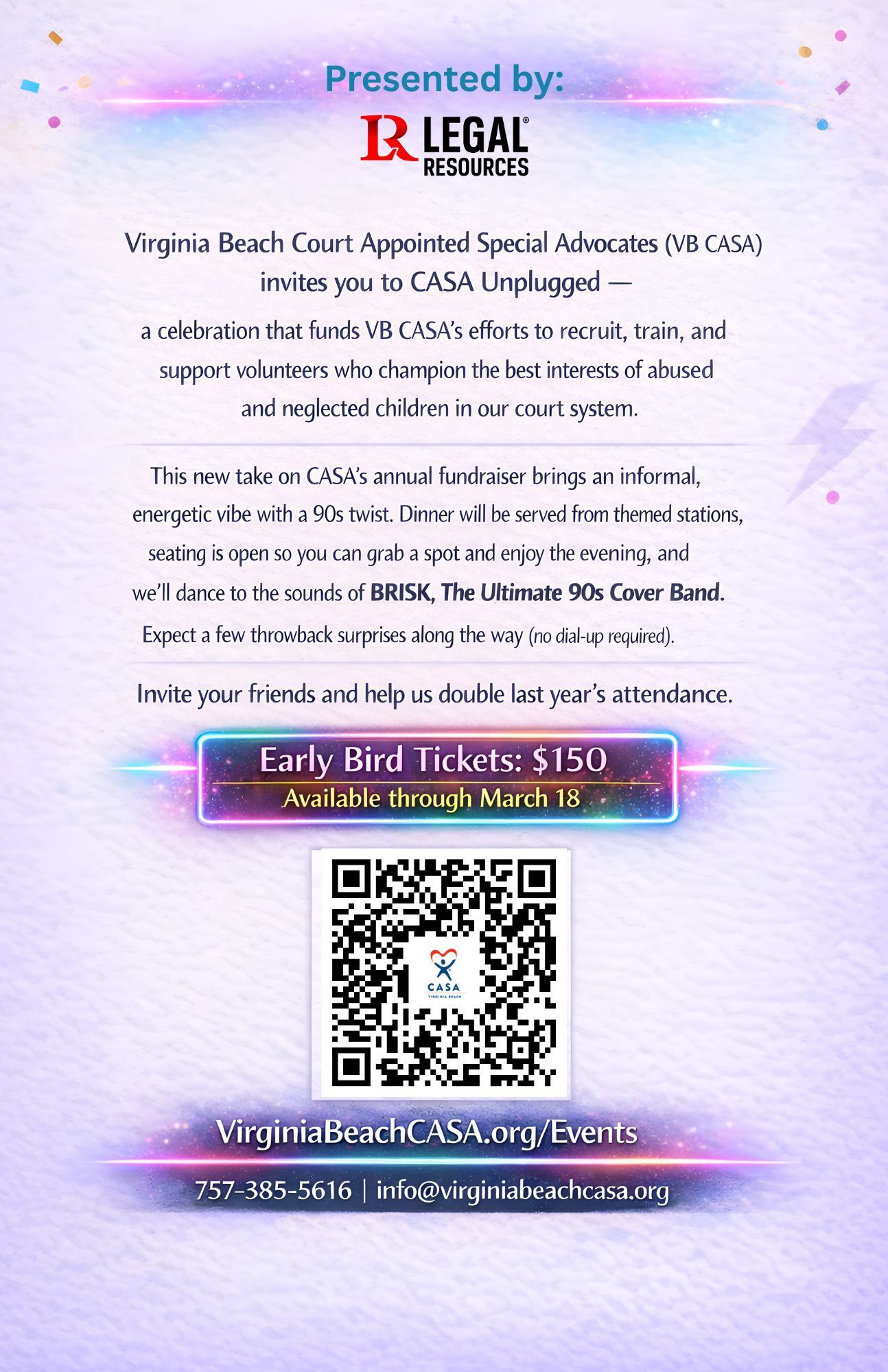 Get ready to rewind to the 90’s for an unforgettable night in support of Virginia Beach CASA. Join us at