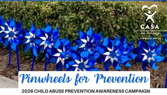 Virginia Beach Court Appointed Special Advocates (CASA) invites you to support the 13th Annual Pinwheels for Prevention Campaign. Since 2014, during the month of April, Virginia Beach CASA has led the community in a city-wide campaign in honor of child abuse prevention month.